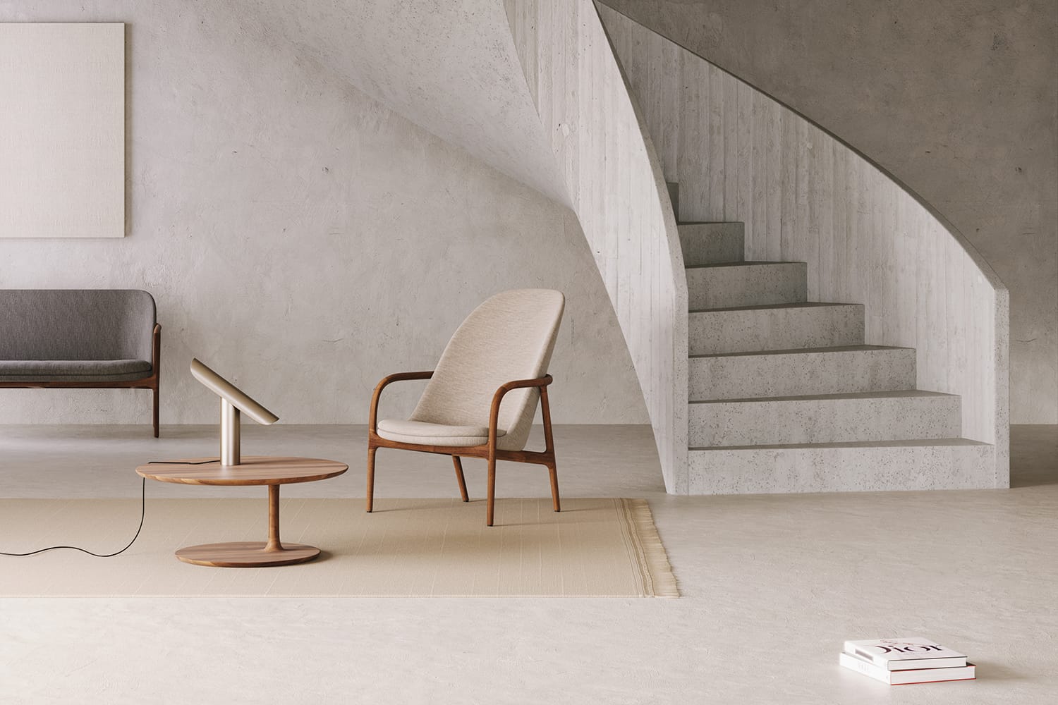 A symmetry with a twist defines a union, a harmonious pair of coffee tables. Functional order has been accomplished by way of diverse elements, variations of circular forms bound in a dynamic structure, visually intriguing and fluctuating. They adapt to use like circles interact in water: they overlap, touch, grow distant. Each part of the pair is composed of two circular wooden planes of a smooth upper part, a curved lower part, connected by a vertical element of a circular section, bound together but detached from the centre of the circles. The coffee tables differ in height and size of the circles, in variations suited to use and possibilities of creating desired combinations. Identical material for all the segments and the soft junctions transitioning into one another are what make the elements and the whole evoke organic beauty and symmetry of nature. The Bloop coffee table, the perfect centre of events, calls for relaxed company. Different combinations can adapt to the number of users and the general mood, contributing to the atmosphere with serene lines and content.