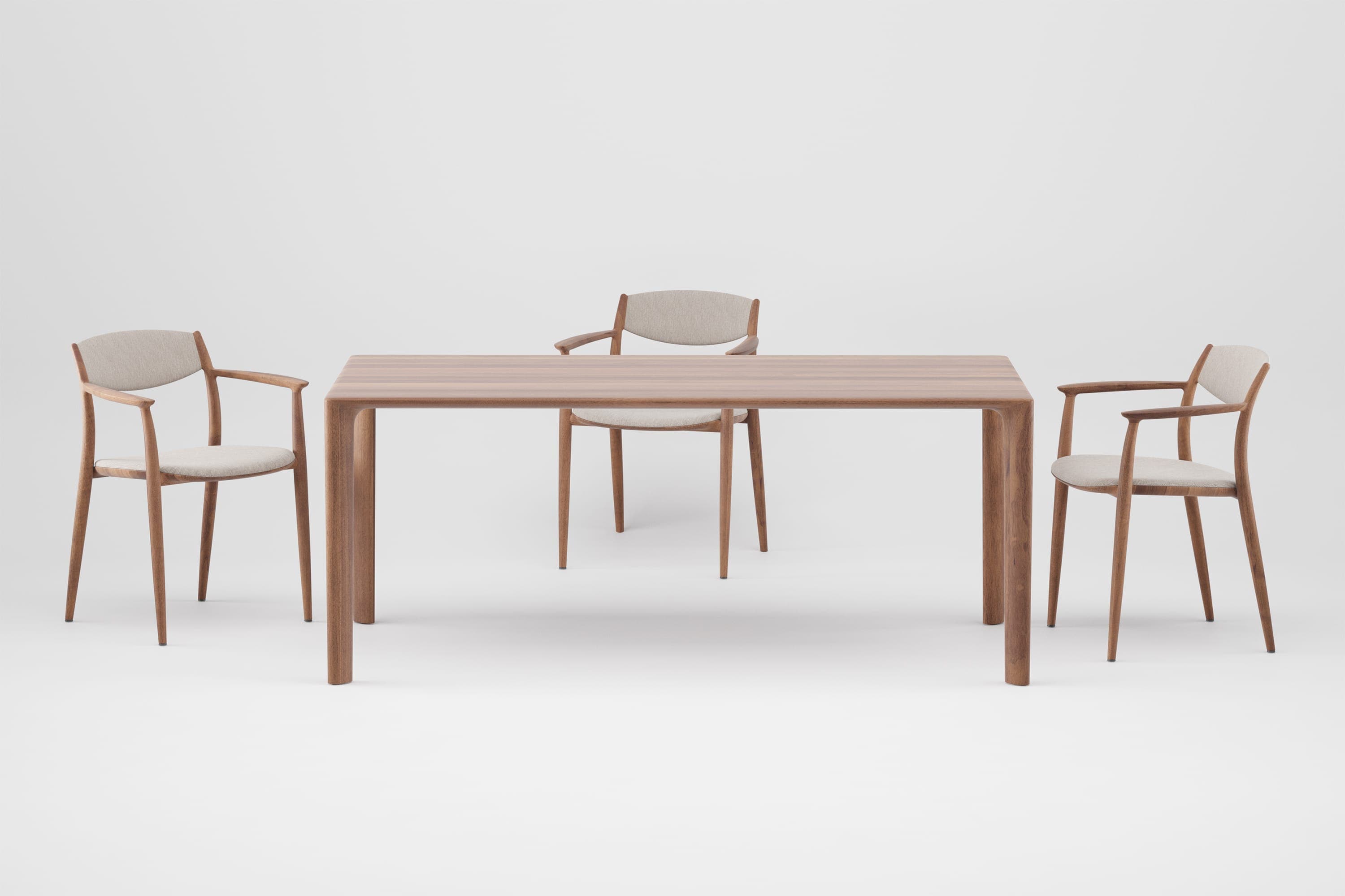 Varieties of upholstered seating furniture of perfectly curved lines provide inviting comfort and refined aesthetics. Like a comfortable soft shell, Mela envelops a space of relaxing sitting, ergonomically suited to the purpose and the user needs, thanks to proportional variations in height and width. The dominant seat and backrest volumes are upholstered and soft-filled, connected by a practical complementary interplay: the backrest follows and outlines the edge of the seat, adheres to it, creating a pleasing soft membrane. The compact and visually elegant solid wood structures complete the picture, encompassing and connecting the seat and the backrest, providing a sense of safety and beauty.
