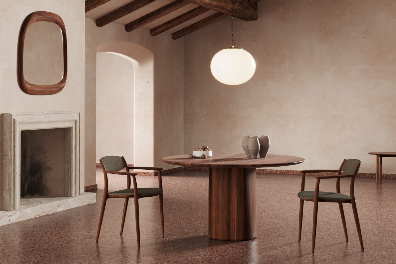 Mirrors are part of the Monument collection, which combines furniture with sculptural elements. Irregular, massive wooden frames transform the mirror into a decorative wall piece. The mirrors work as stand-alone objects or can be combined into compositions. They come in various sizes, ranging from wall-mounted to oversized and freestanding mirrors.