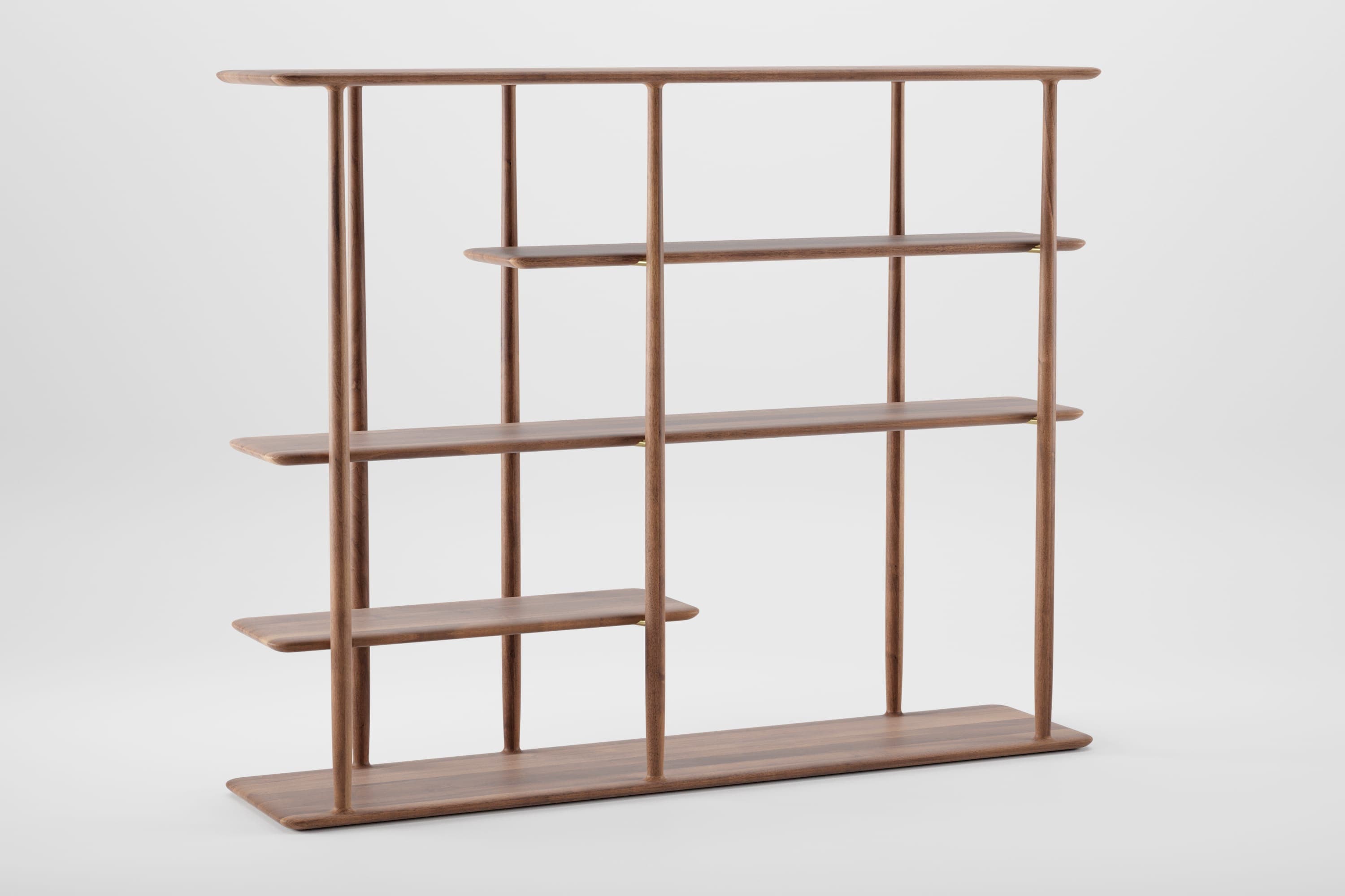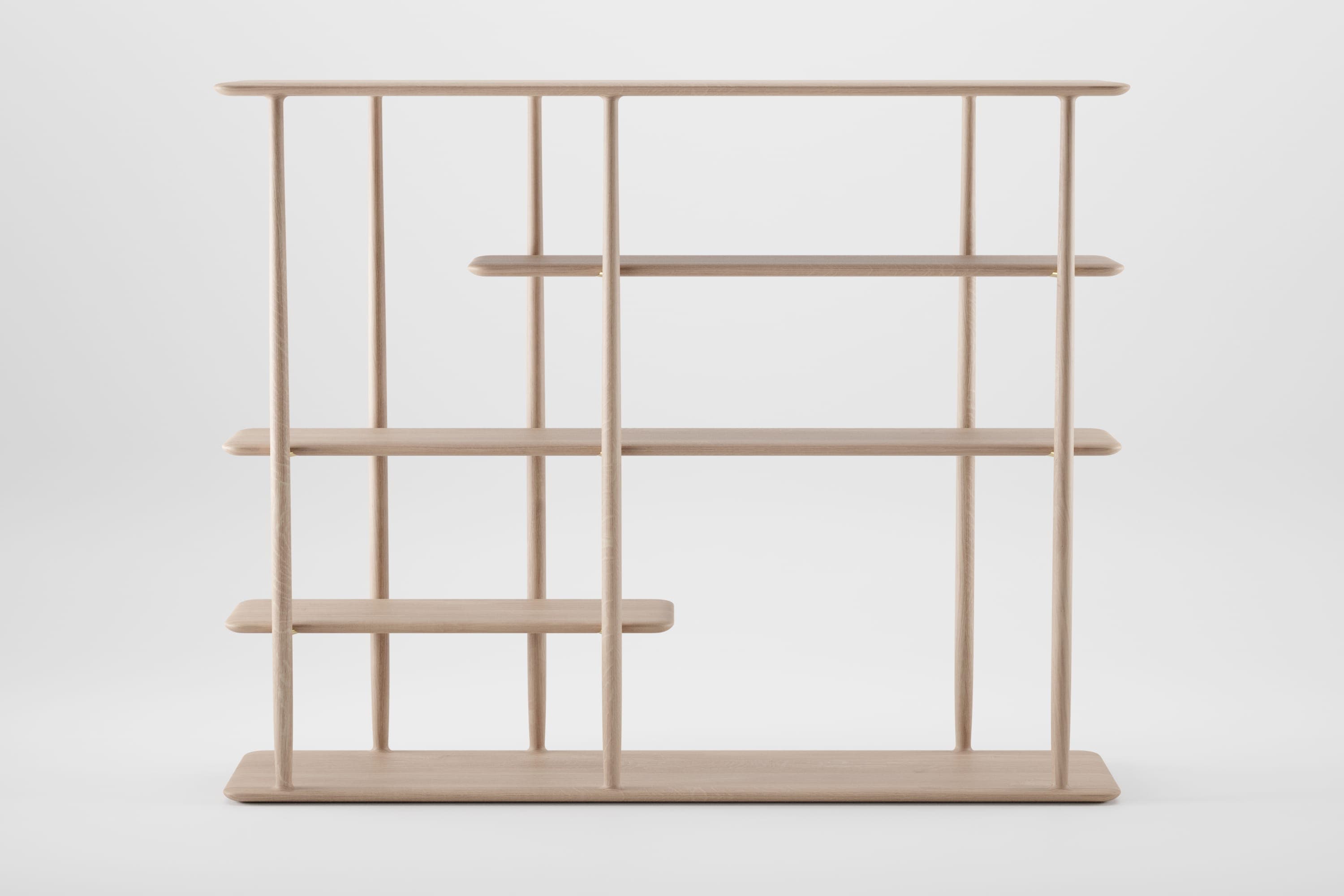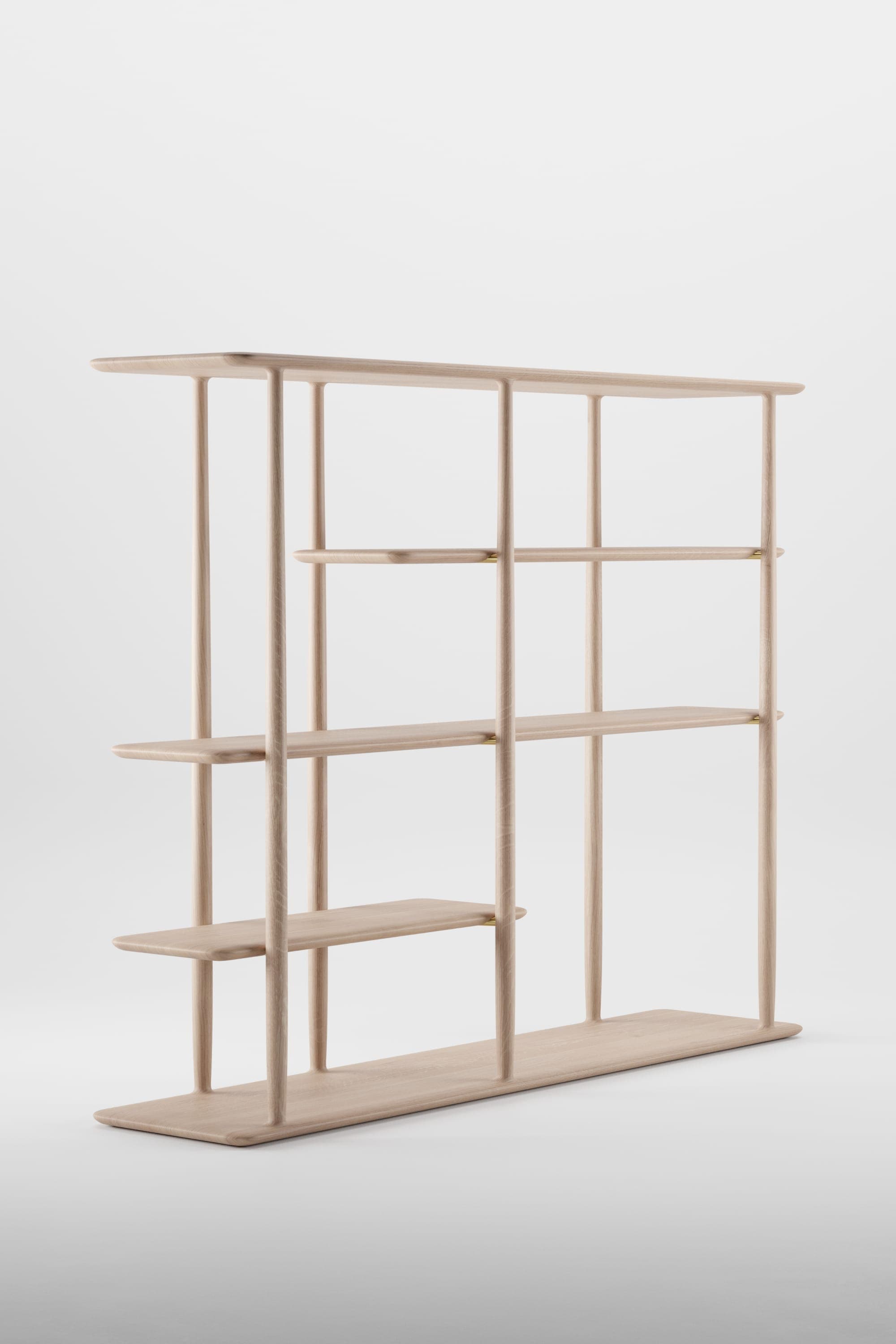 The Nila shelving system is a series of light, airy display units de signed to complement modern spaces. Vertical supports blend seamlessly into the upper and lower boards, creating soft transitions and a harmonious structure. Floating shelves emphasize visual lightness, while the interplay between solid surfaces and open space offers a versatile canvas for creative compositions. Perfect as a room divider or a standalone feature, the Nila shelving system brings both function and aesthetic refinement.